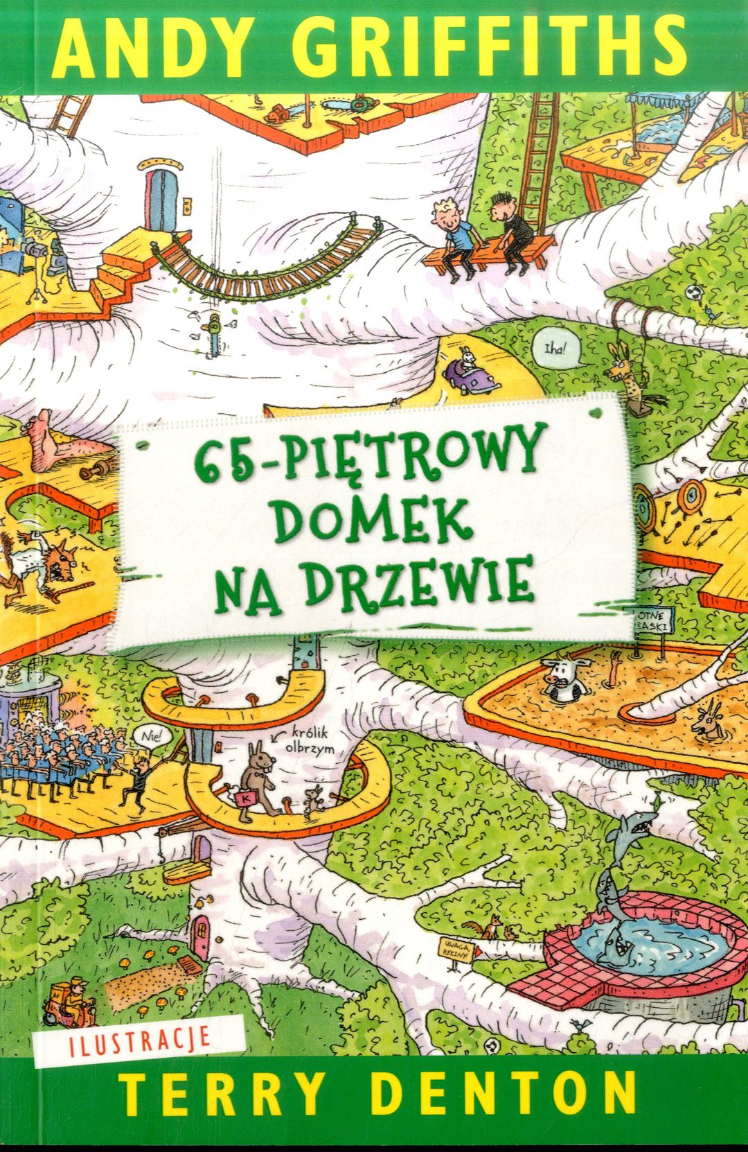 Piąty tom najśmieszniejszej serii od czasów „Dziennika cwaniaczka”! Andy i Terry mieszkają w sześćdziesięciopięciopiętrowym domku na drzewie (mieli pięćdziesięciodwupiętrowy, ale się rozbudowali). A ten domek jest najfajniejszy na świecie! Znajdziecie tu między innymi: salon piękności dla zwierząt, pokój, w którym zawsze są twoje urodziny (nawet jeśli akurat ich nie ma), eksplodujące gałki oczne i mrówczą farmę. No, na co czekacie? Właźcie!